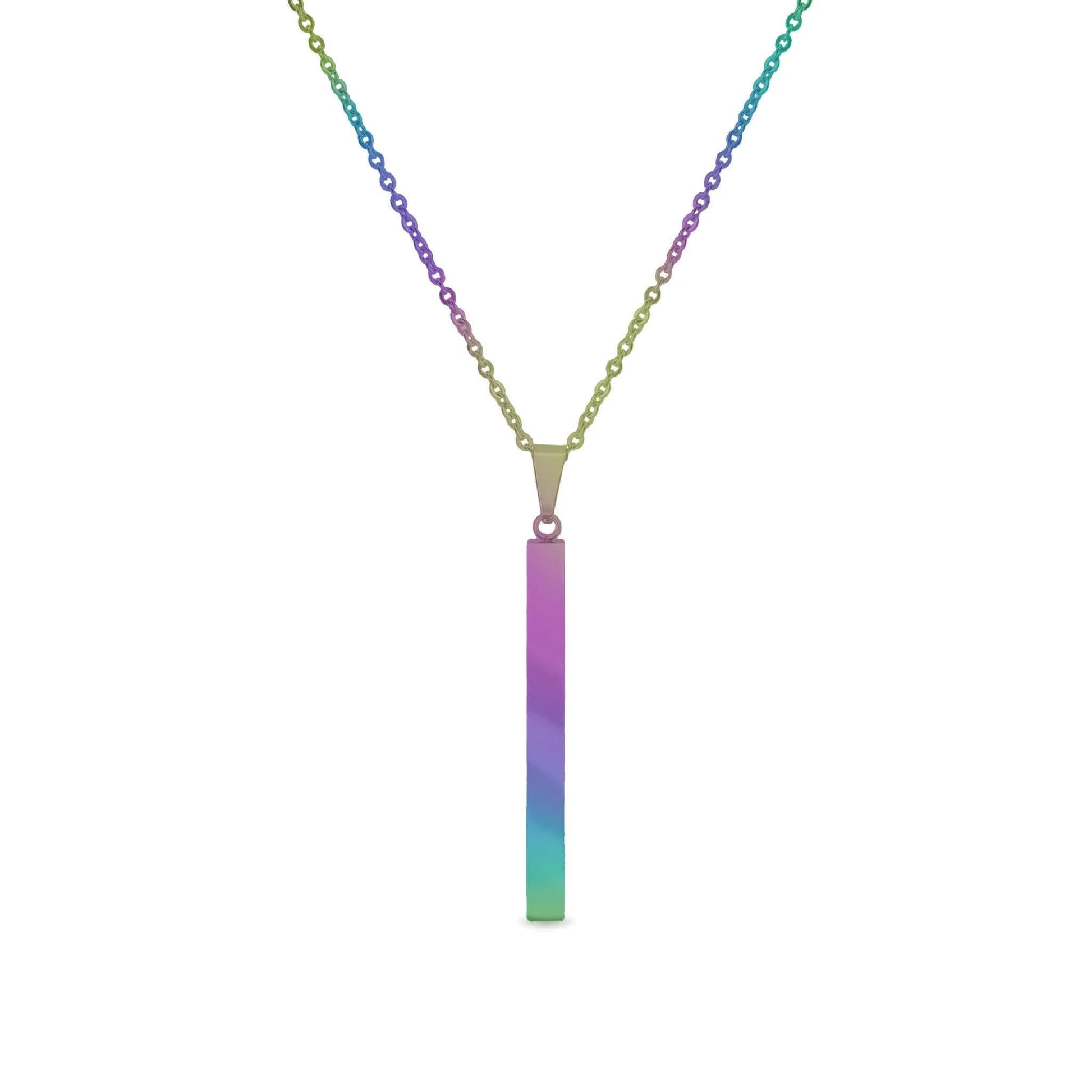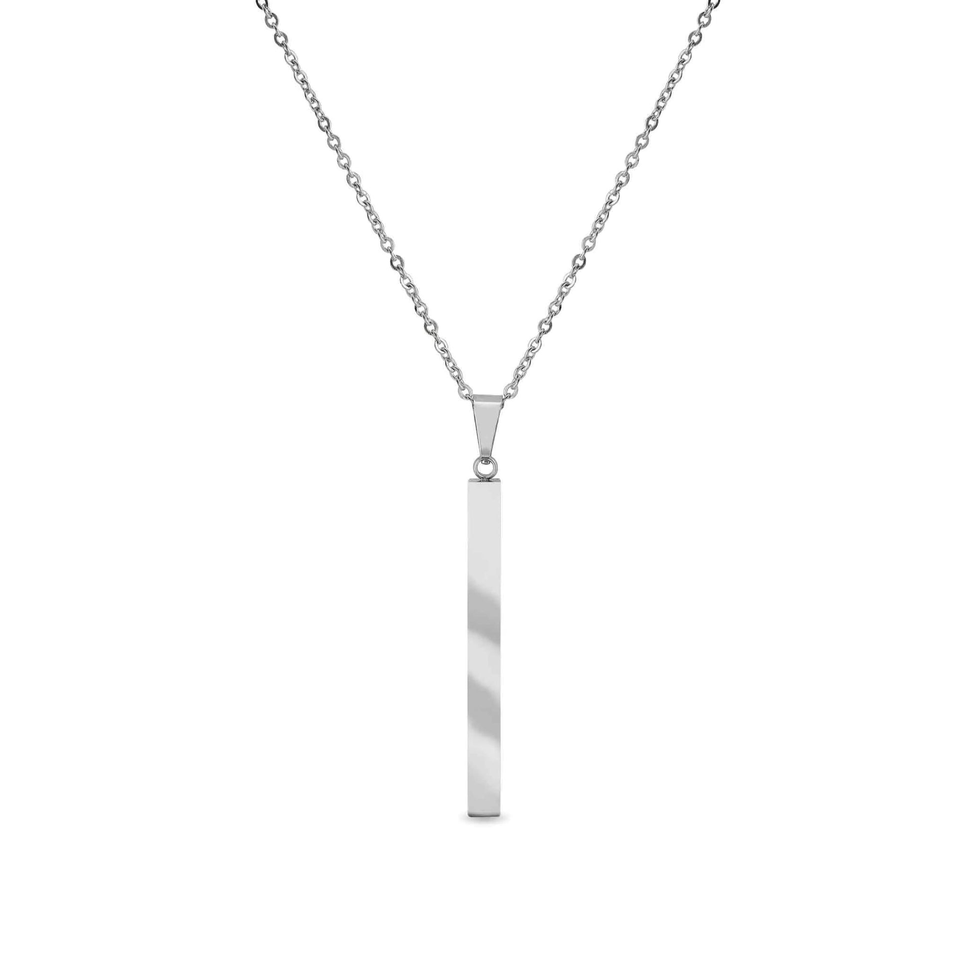Square 4 Sided Vertical Bar Stainless Steel Necklace with Top Bail