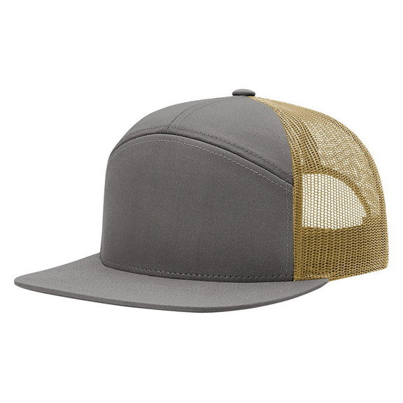 The 168 is a contemporary-styled seven-panel trucker with a flat bill, popular with today's fashion-forward headwear fans. The Hi Pro shape and seamless front panel provide the ideal canvas for all types of decoration.