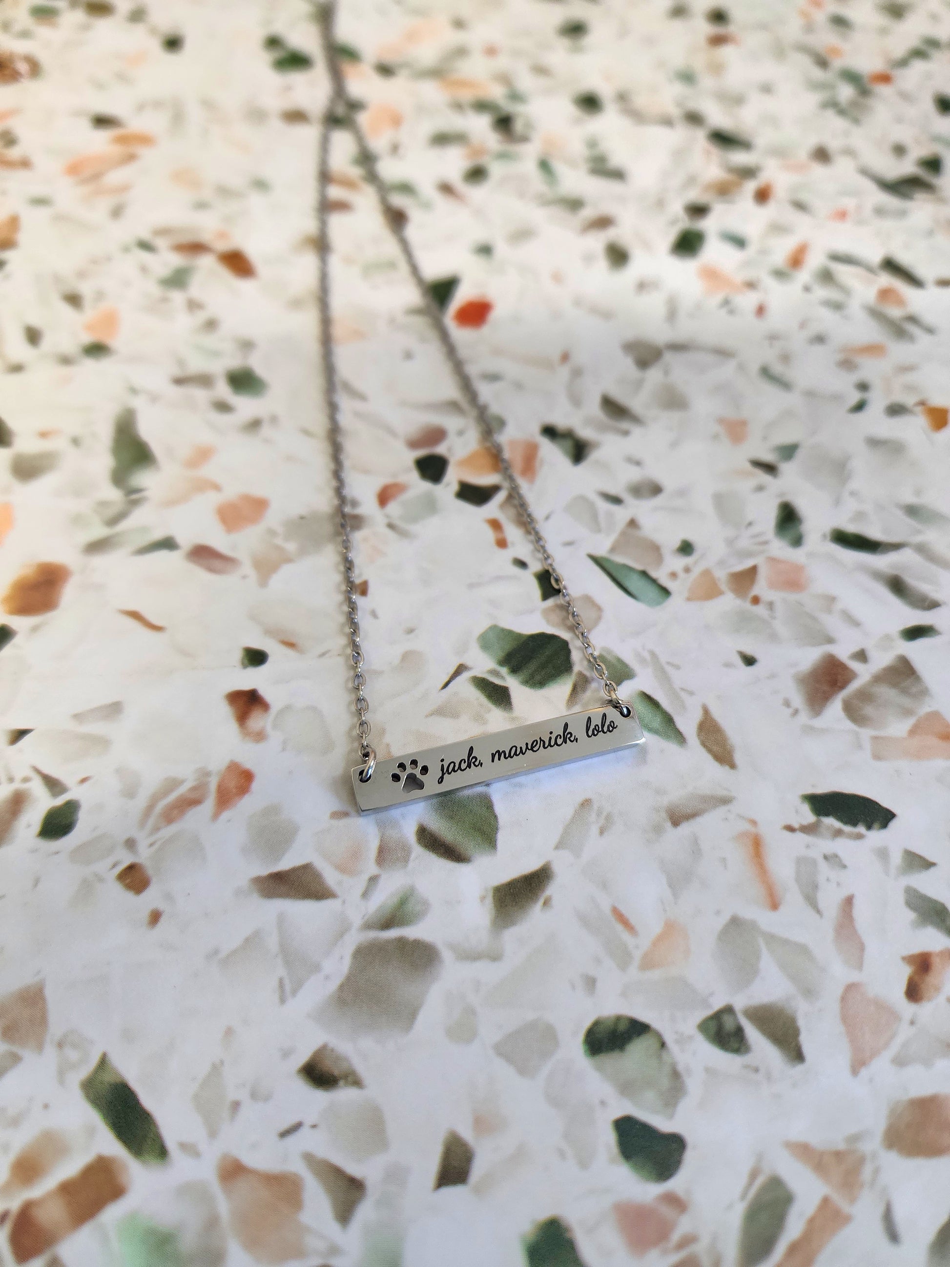 Paw Print Cutout Horizontal Bar Stainless Steel Necklace